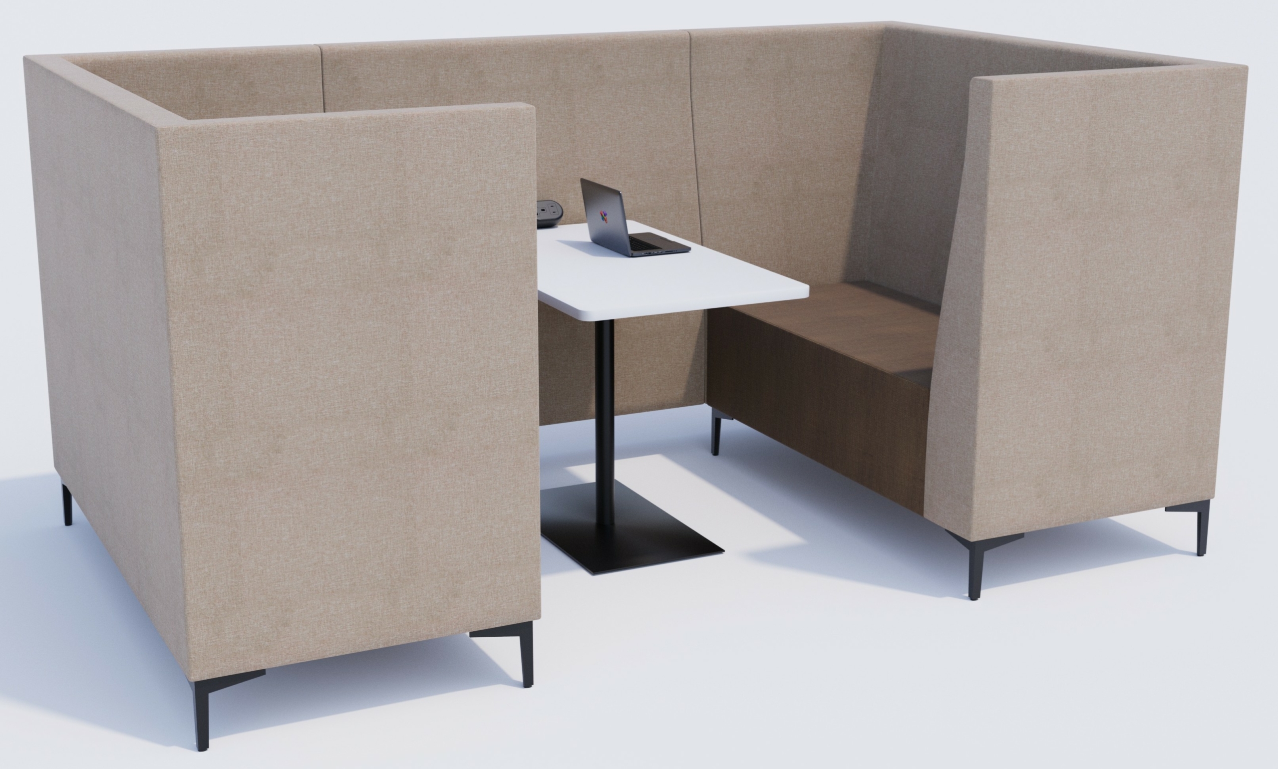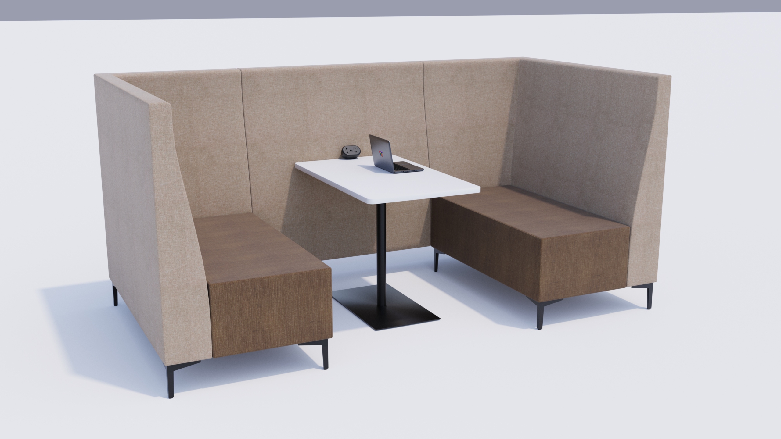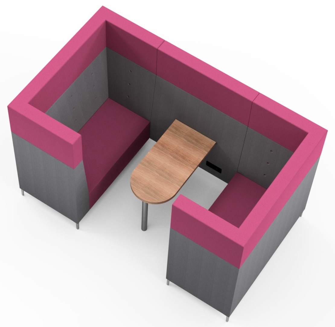 The Kolbak Booth offers comfort and classic lines to provide the private spaces required for meetings or quiet working. The back panel supports AV equipment and power connections are available.